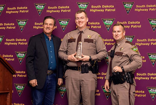 The awards were presented this week at the 13th Annual Highway Patrol Awards Ceremony in Deadwood, which featured Governor Larry Rhoden as the keynote speaker. “Our troopers and inspectors are on the front lines, keeping our state strong, safe, and free,” Governor Rhoden said. “They are held to high standards and represent the state well.”